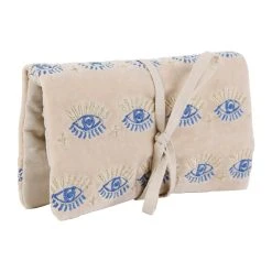 SEMA DESIGN Pochette Bijoux Voyage Visionnary Creme Oeil Indigo 20x24cm Velours Coton