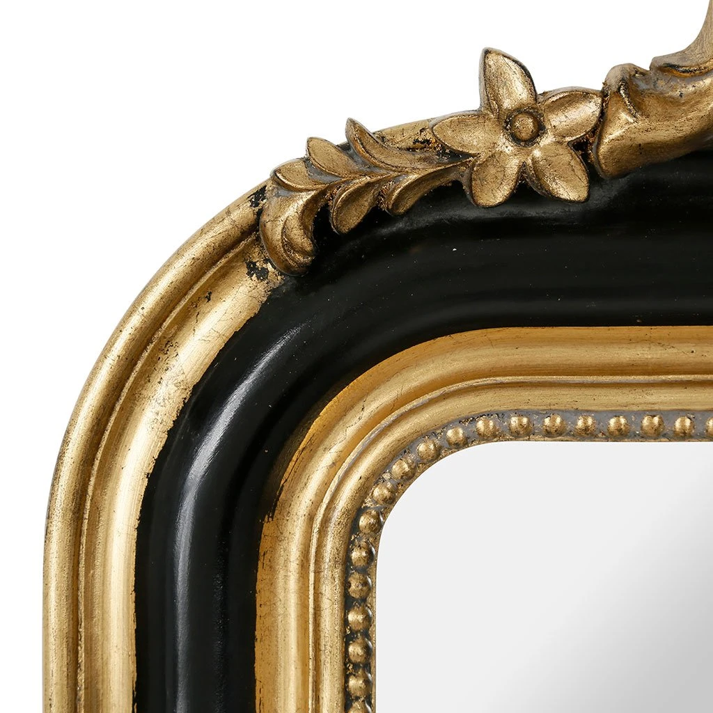vieilli très élégant; Accrochez ce miroir au dessus d’une cheminée ou d’une commode en bois noir patiné et admirez le décor : un joli programme non?