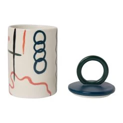 SEMA DESIGN Pot Avec Couvercle Visage Arty Ivoire Et Noir D8Xh9Cm En Gres